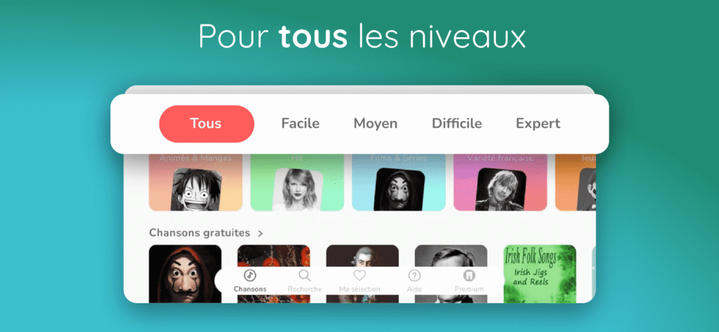 La version Premium ouvre l’intégralité du catalogue et l’ensemble des outils interactifs, avec des ajouts réguliers de nouveaux morceaux.